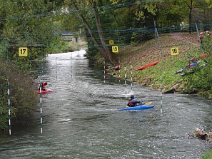 Wenn wir die wichtigsten Paddelschläge und deren Kombination sowie einige wichtige Basics gelernt haben, wechseln wir auf die Slalomstrecke und damit in die Strömung.