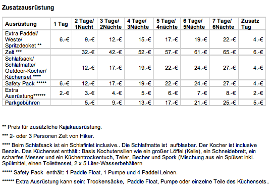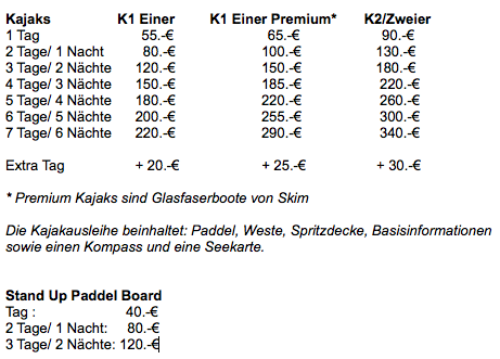 - plus Kajakmiete: 55,00.- EUR. Auf Wunsch kann das Kajak für den Rest des Tages genutzt werden