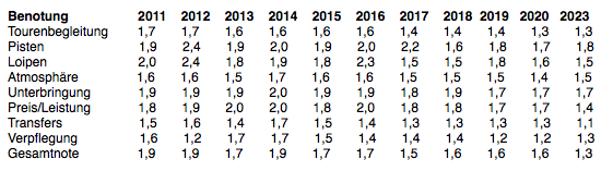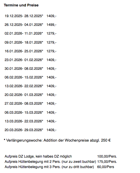 Nicht enthalten: Loipenpass (ca. 14 EUR/Tag bzw. 59 EUR/Woche)